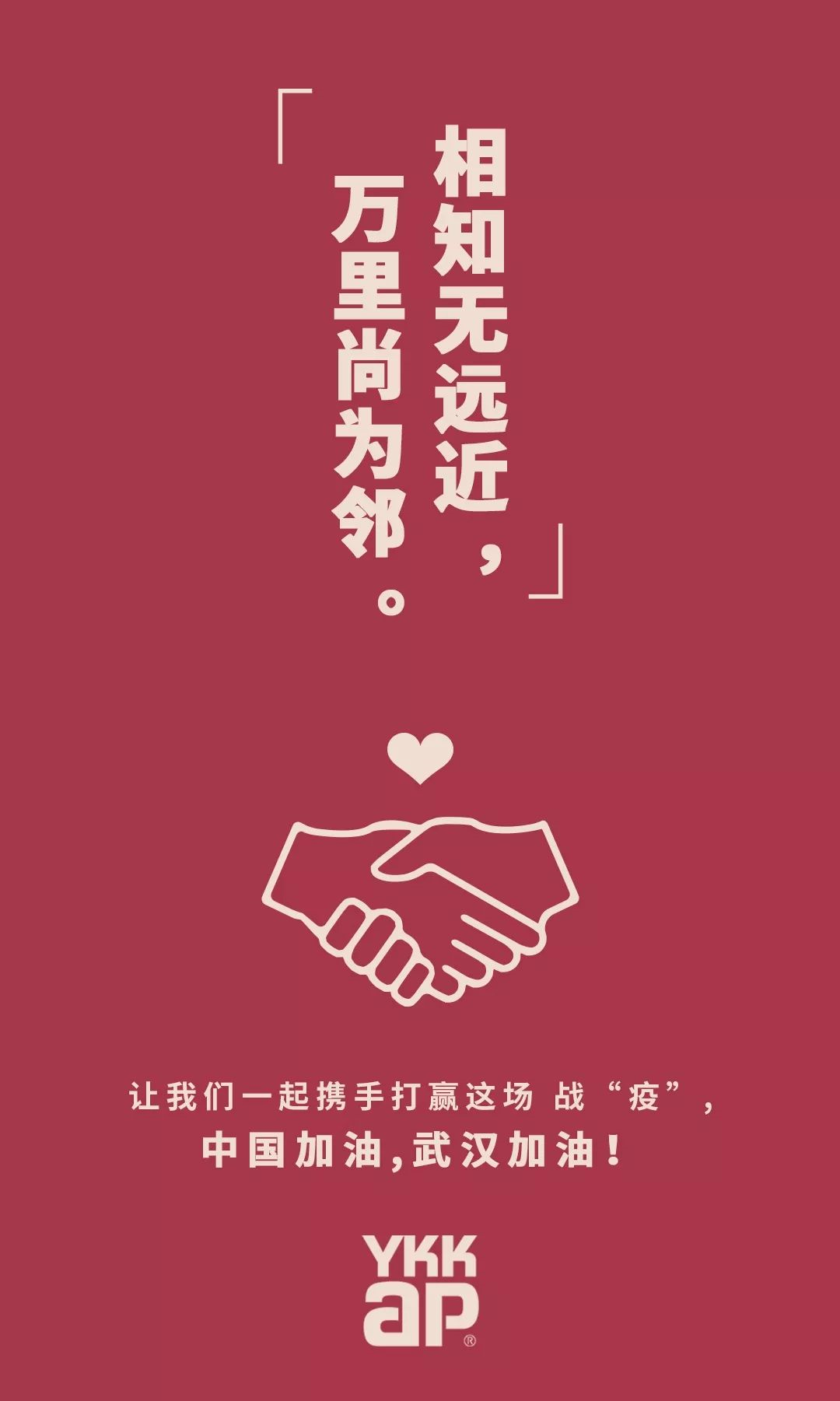 以“善之巡環(huán)”為企業(yè)精神并常年深耕中國(guó)市場(chǎng)的YKK集團(tuán),面對(duì)中國(guó)這場(chǎng)突發(fā)的疫情,我們用實(shí)際行動(dòng)聲援中國(guó)!