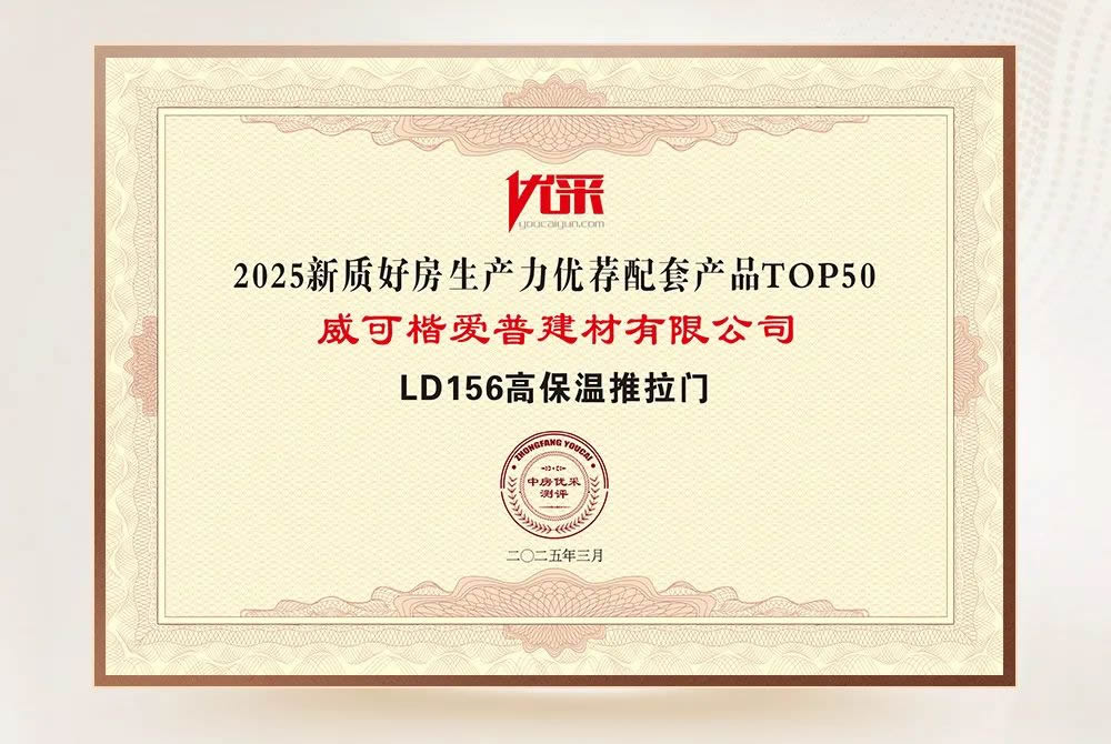 YKK AP LD156高保溫推拉門,也作為「好綠色」品類,榮獲“2025新質(zhì)好房生產(chǎn)力優(yōu)薦配套產(chǎn)品TOP50”,并入選產(chǎn)品同步收錄在《2025新質(zhì)好房生產(chǎn)力優(yōu)薦配套產(chǎn)品TOP50》年度目錄,進(jìn)入優(yōu)采平臺(tái)線上“優(yōu)設(shè)優(yōu)選產(chǎn)品庫(kù)”,為地產(chǎn)采購(gòu)和消費(fèi)者選擇提供科學(xué)依據(jù),助力行業(yè)向綠色、智能、安全的高品質(zhì)住宅新生態(tài)發(fā)展。