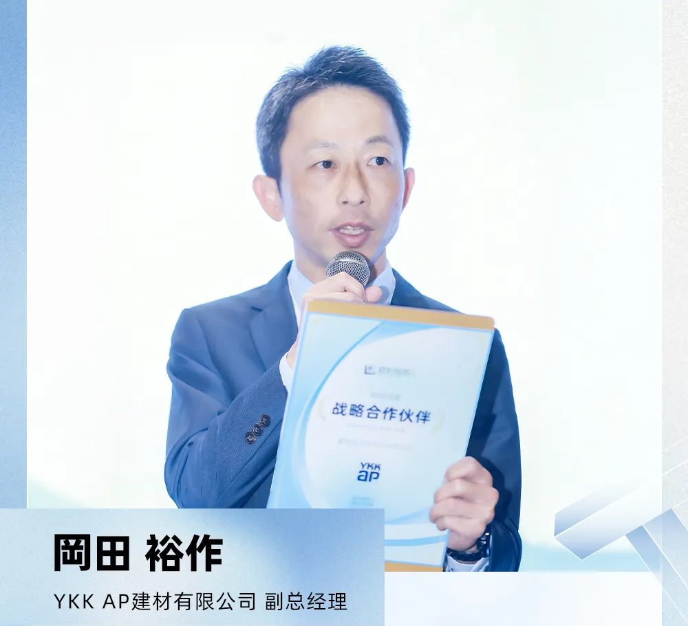 發(fā)布會現(xiàn)場,YKK AP正式獲得授牌成為「設計拾貳人」戰(zhàn)略合作伙伴。YKK AP建材有限公司副總經(jīng)理 岡田 裕作發(fā)表了致辭,并談到“每一扇門窗都是設計師筆下的呼吸口,是連接功能與美學的紐帶。