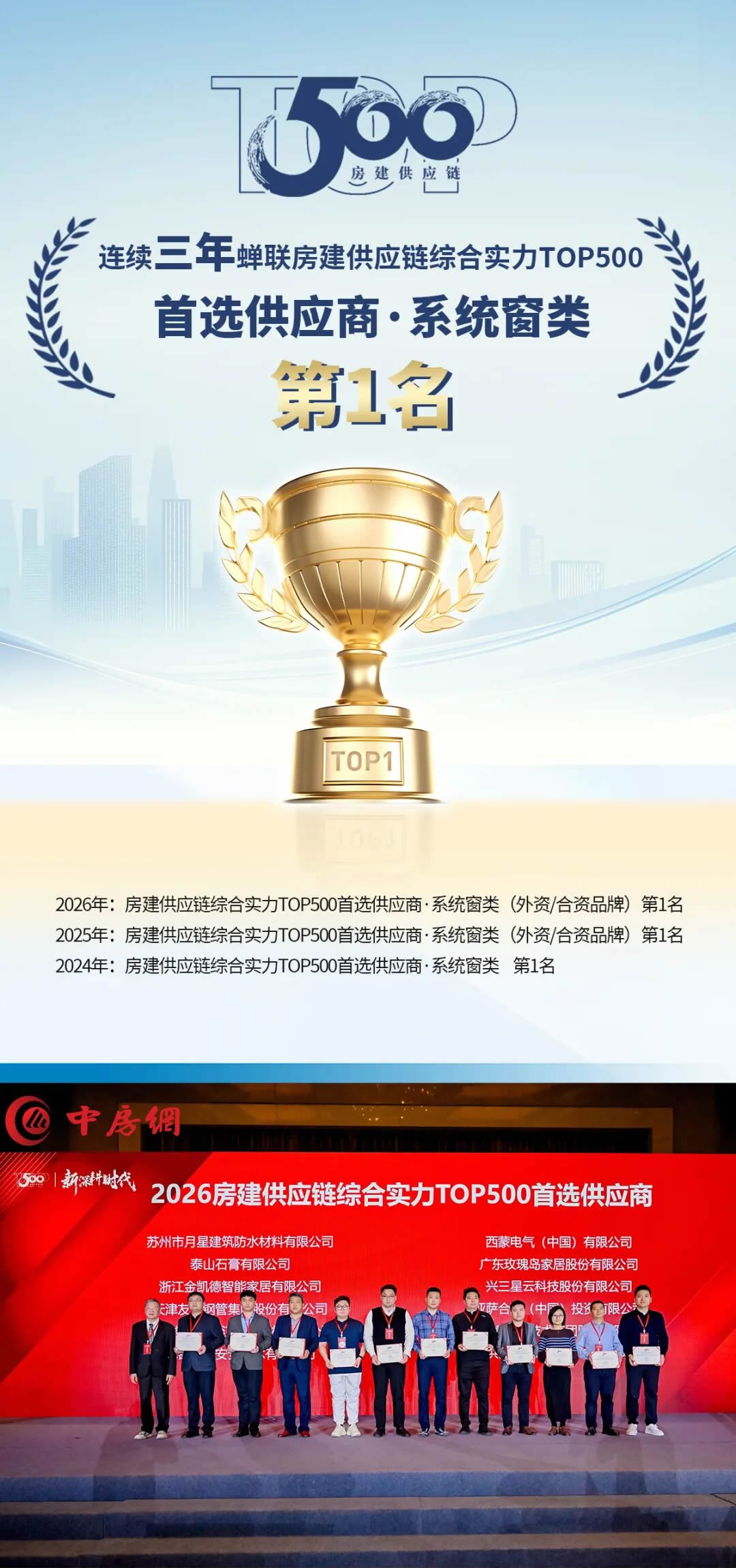 3月,以“深耕新時代”為主題的2026中國房地產(chǎn)TOP500研究成果發(fā)布會暨房地產(chǎn)發(fā)展高峰論壇在北京盛大啟幕。備受矚目的《2026房建供應(yīng)鏈企業(yè)綜合實力TOP500首選供應(yīng)商服務(wù)商品牌研究報告》正式發(fā)布。