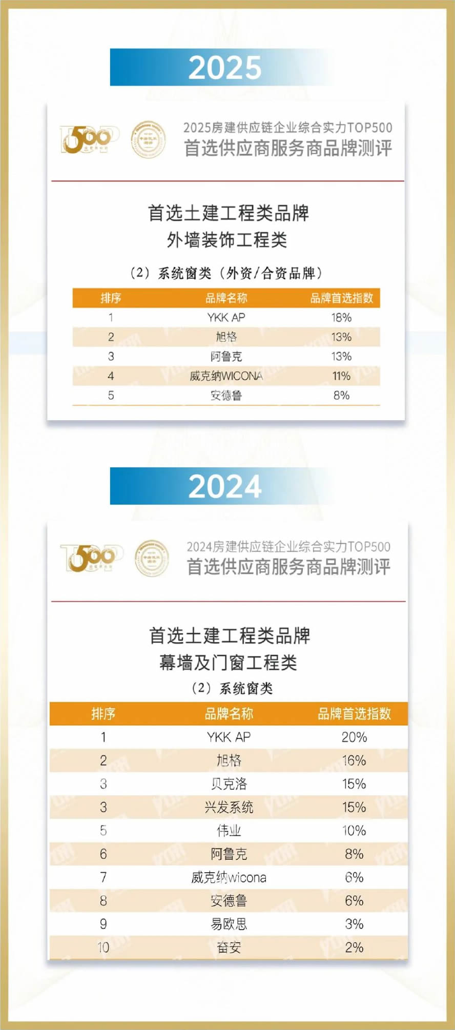 YKK AP依托深厚品牌影響力與系統(tǒng)門窗領(lǐng)域核心競爭力,榮獲“2026房建供應(yīng)鏈綜合實力TOP500首選供應(yīng)商·系統(tǒng)窗類”稱號,并在外資/合資品牌中以19%的首選指數(shù)排名第一。此次蟬聯(lián)榜首,彰顯了YKK AP多年持續(xù)獲得的行業(yè)認(rèn)可與客戶信賴。