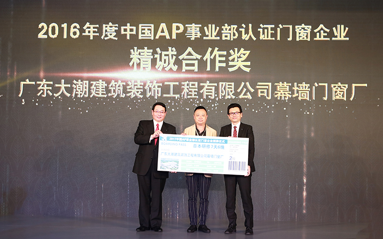堀秀充社長和松本昭弘事業(yè)部長的發(fā)言中,均表達了對所有認證門窗企業(yè)的感謝,并對他們在過去一年中的努力做出充分肯定,之后,由堀秀充社長和松本昭弘事業(yè)部長共同為5家企業(yè)頒發(fā)了2016年度精誠合作獎