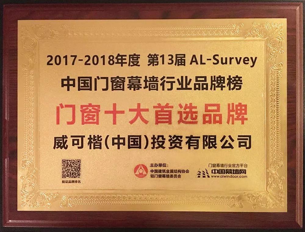 2018年3月10日,由中國建筑金屬結(jié)構(gòu)協(xié)會(huì)主辦,中國幕墻網(wǎng)承辦的“第十三屆AL-Survey門窗幕墻行業(yè)大型讀者調(diào)查活動(dòng)”頒獎(jiǎng)儀式在廣州廣交會(huì)威斯汀酒店隆重舉行。YKK AP繼2016、2017年后,連續(xù)3年榮獲“系統(tǒng)門窗十大首選品牌”殊榮!