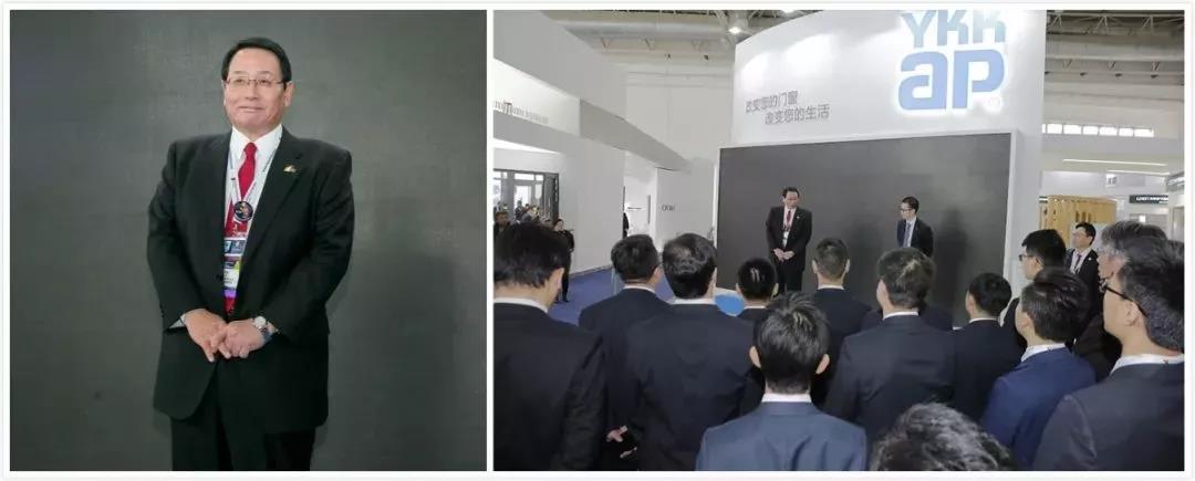 展會(huì)首日,YKK AP株式會(huì)社堀秀充社長(zhǎng)蒞臨展臺(tái),為員工鼓舞士氣,并拉開(kāi)YKK AP展臺(tái)正式開(kāi)始的序幕。
