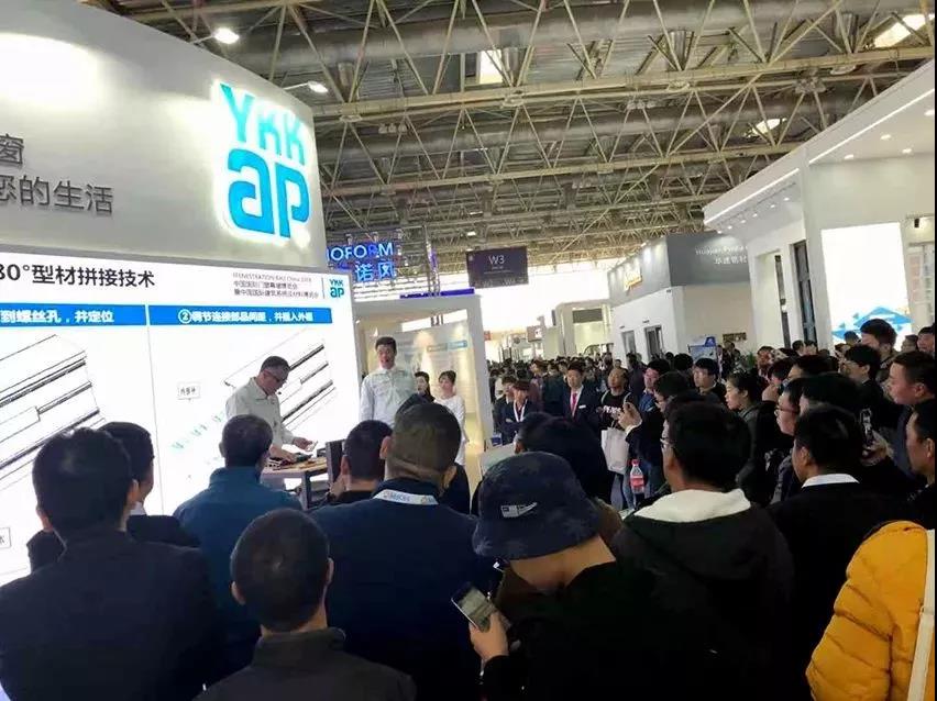 本次展會(huì),YKK AP還為大家?guī)?lái)了門窗系統(tǒng)產(chǎn)品的黑科技大開(kāi)口180°型材拼接技術(shù)演示以及反復(fù)啟閉性能試驗(yàn)展示,熱騰騰的現(xiàn)場(chǎng)圖接好咯!這樣的技術(shù)演示很難得在公開(kāi)場(chǎng)合可以看到哦~