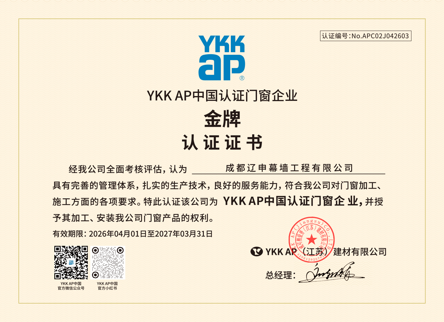 鋁合金門窗 成都 成都遼申幕墻工程有限公司 2026/4/1-2027/3/31