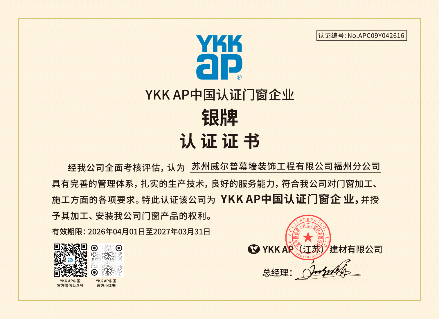 鋁合金門窗 南平 蘇州威爾普幕墻裝飾工程有限公司 福州分公司 2026/4/1-2027/3/31