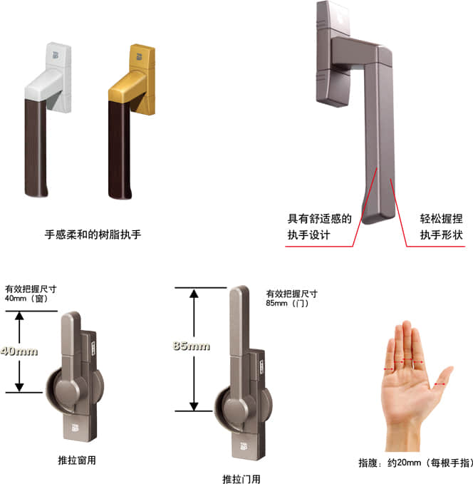 基于人體工程學(xué)設(shè)計(jì)的執(zhí)手,在考慮使用方便性的基礎(chǔ)上,對(duì)影響手感的各種因素,如尺寸、材質(zhì)、形狀、安裝位置等方面,賦予了精心的設(shè)計(jì),方便每個(gè)家庭成員的使用。